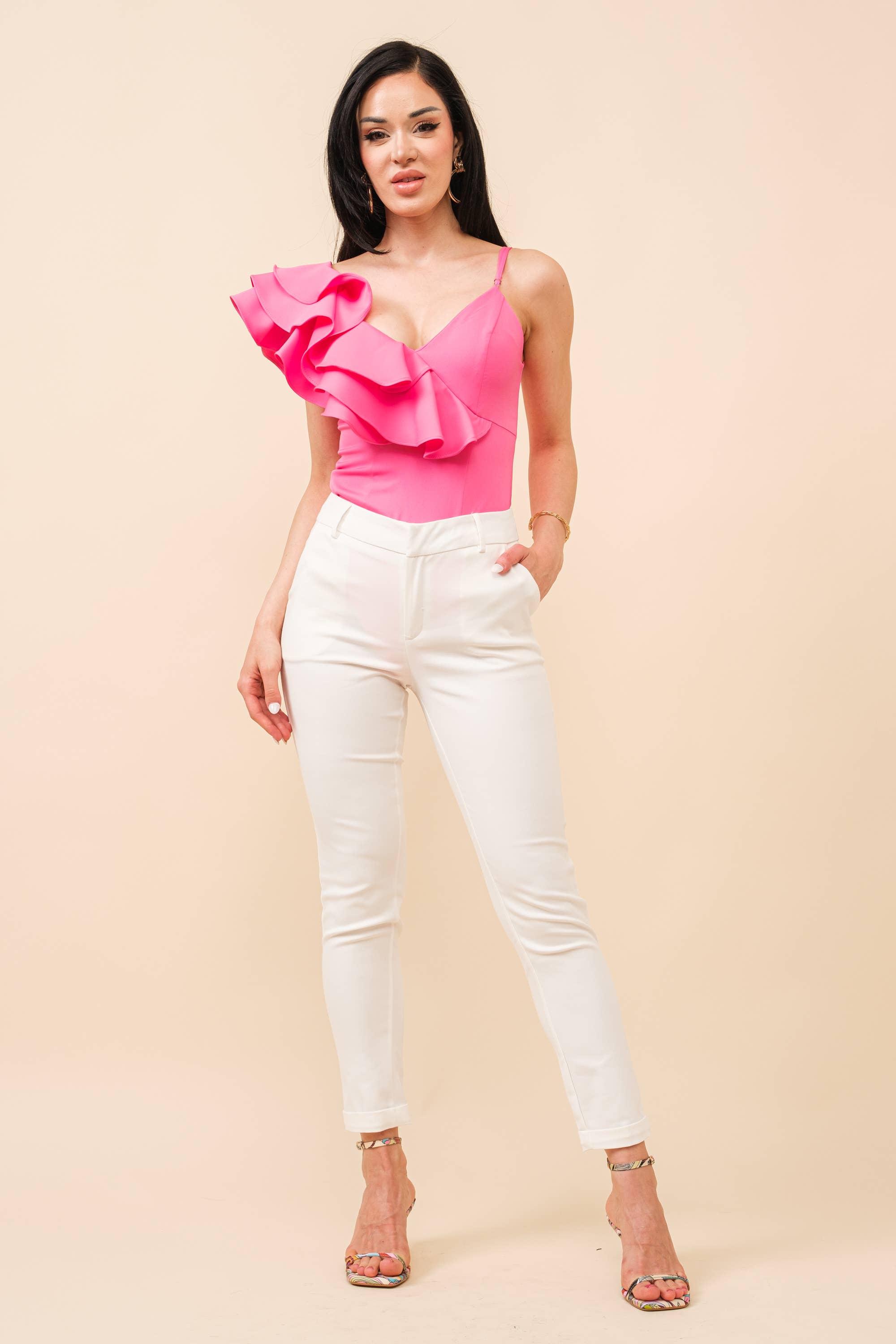 The classic design and lightweight fabric make this bodysuit perfect for everyday wear. The ruffled neckline adds a stylish touch to complete your perfect look. Model is wearing size: S Model Measurements Height: 5' 7.5" Waist: 24" Bust: 32C" Hips: 36" Top, dresses, bottom, jackets, vests, blusas, vestidos, pantalon, blouse, metalico, metalic, sweater, sueter, bodysuits, shorts, skirts, lentejuela, satin, long sleeve, sacos, blazer, sexy dresses, romper, jumpsuit, knits, skort, midi dresses, corset