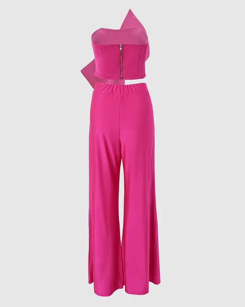 Hot Pink Bow top & wide leg pants setHot Pink Bow top & wide leg pants set