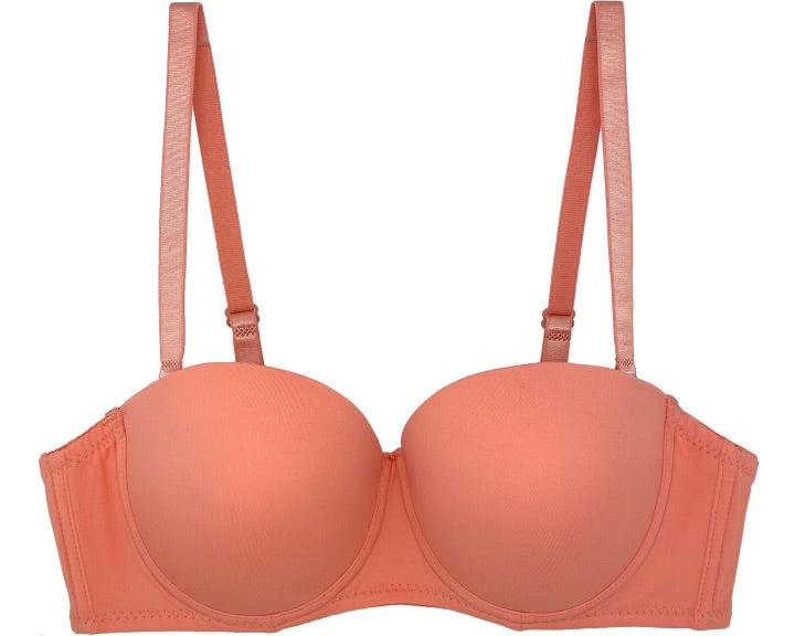 A beautiful three-quarter cup push-up bra featuring thin sexy straps that create a sexy cut-out design along the upper chest. Comes in a pair including the coral and flamingo pink!