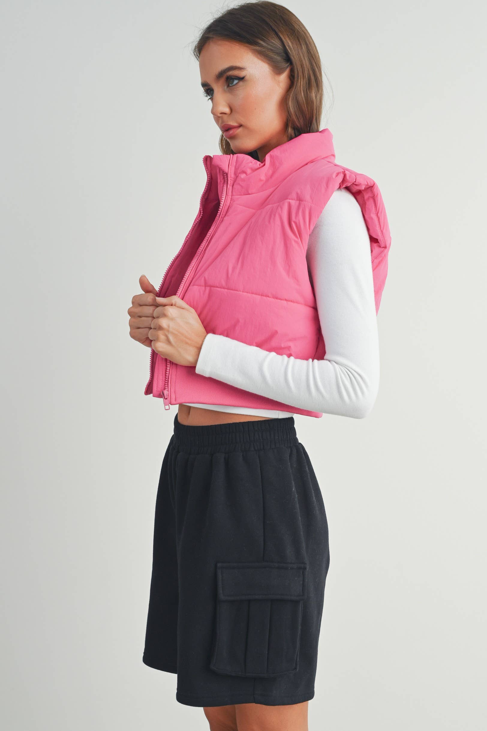 The perfect blend of fashion and functionality. Model is wearing a size S Model : 5'9" - B 31" - W 23 1/2" - H 35 1/2" SELF: 100%POLYESTER, LINING: 100%POLYESTER CONTRAST: 95%COTTON 5%SPANDEX