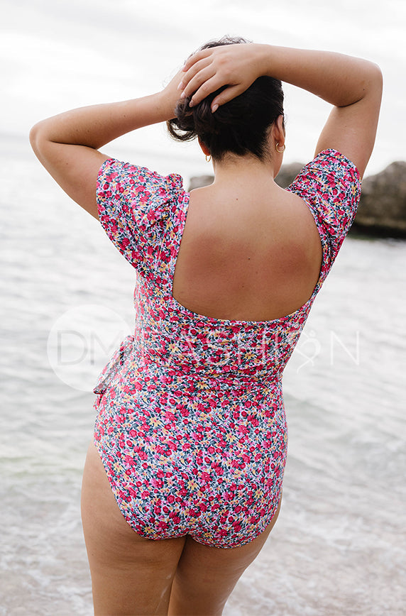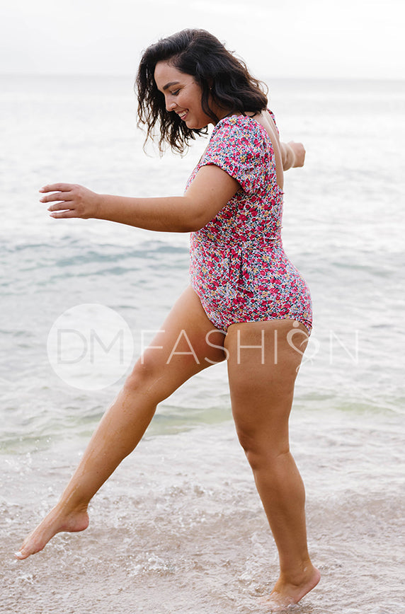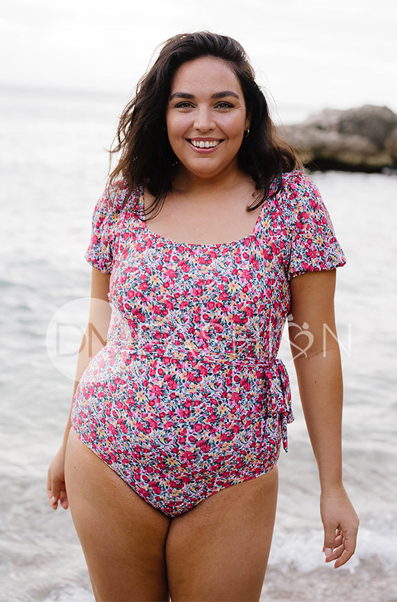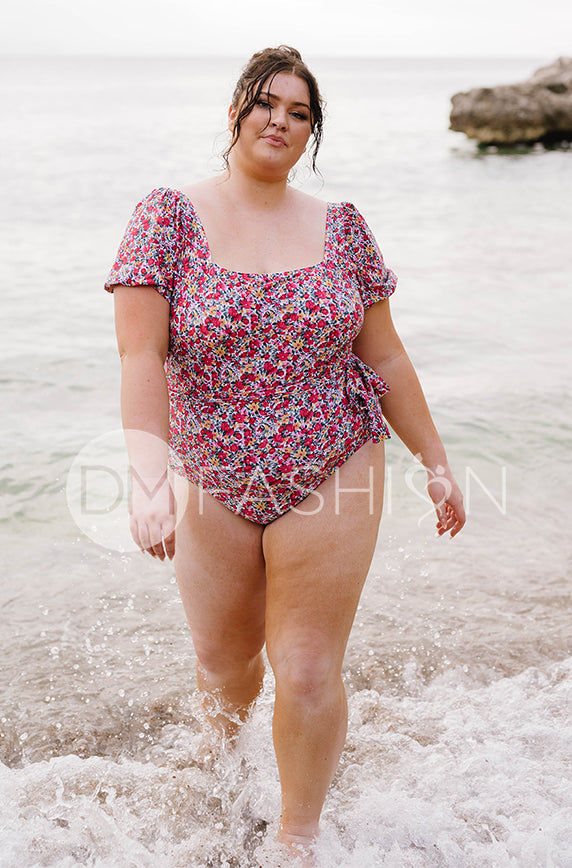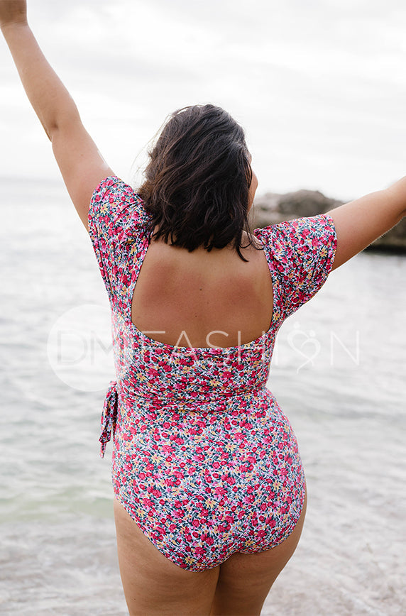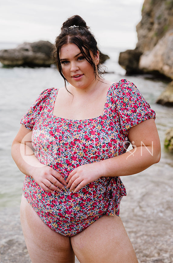 this was designed with you in mind! The details this one piece are not only extremely flattering on all body shapes, but also it is the perfect suit to wear with a pair of shorts, or skirt after the beach or pool. How we love the puff sleeves, attached waist tie, the square neckline & of course, our full bottom coverage! Has soft removable cups with a under seam that holds & supports small & large busts! Feel confident & beautiful as you make an appearance that will be remembered!
