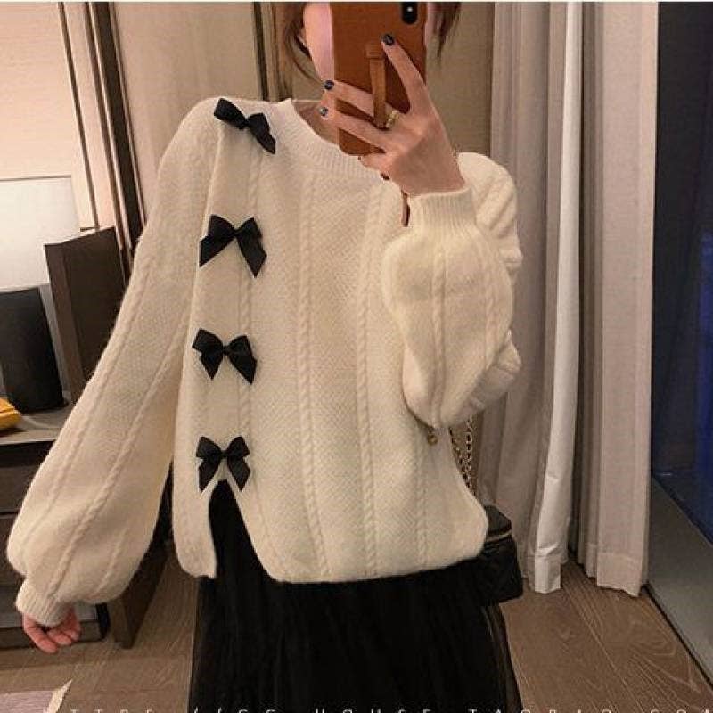 Material :Dacron Feature: Split-side, Jacquard ,Bowknot, Plain, Flexible Occasion: Going out, Casual, Vacation, Office, Urban, Artistic Retro ,Girlish Sweetness, Light Maturity, Stylish Selection, Leisure Fashion Neckline: Round-neck Seasons: Spring, Autumn Style: Loose, Cute, All-match, Look-younger Sleeve Length: Long Sleeve Type: Sweater Sleeve Style: Raglan Sleeve Size FREE SIZE (inch) : Bust= 40.95 ; Sleeve= 17.55 ; Length= 23.40 ;