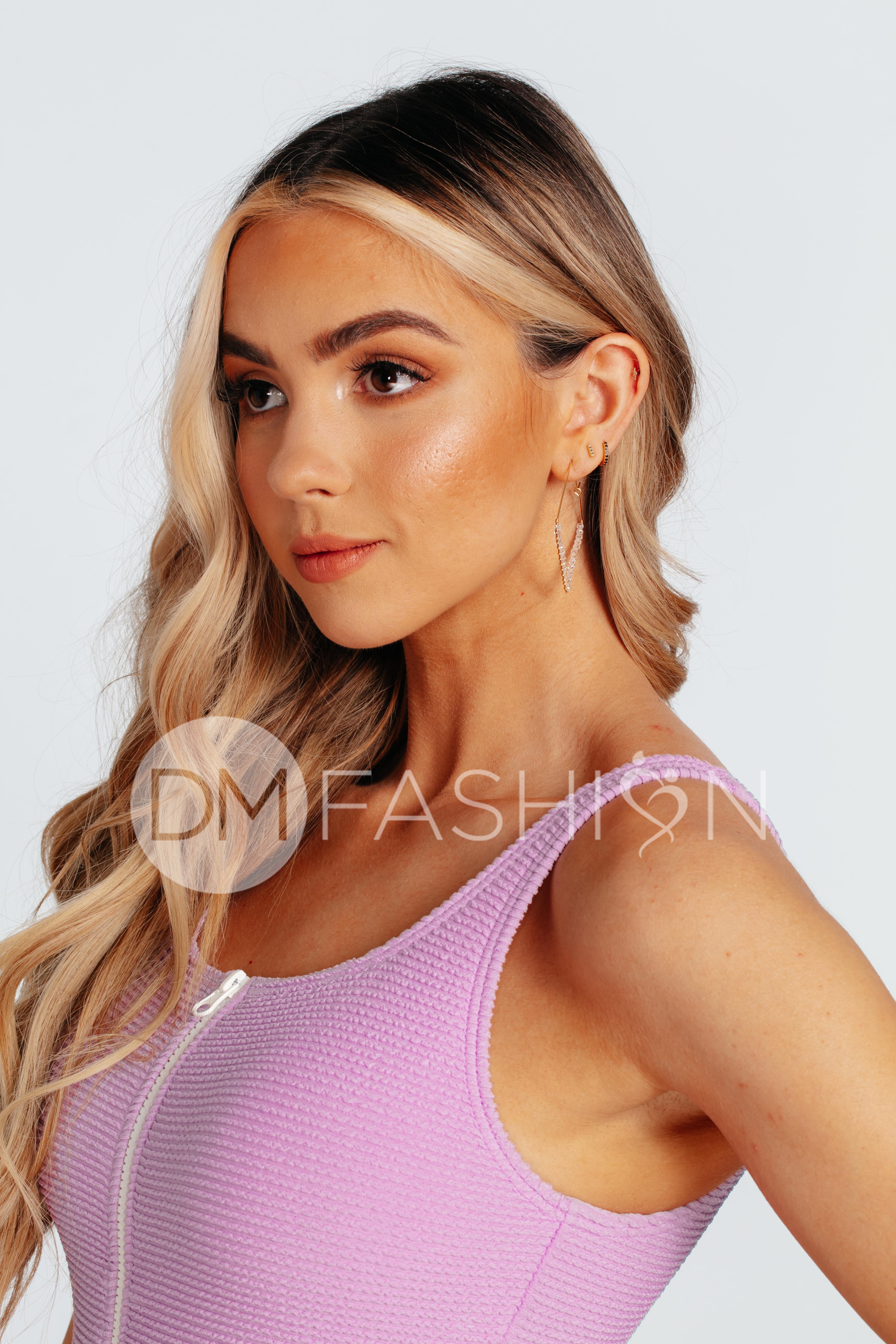 A One Piece that has it all! Stretchy and resilient textured fabric that minimizes and flatters all body shapes, including maternity! Zipper front for design and detail, as well offering access for nursing mamas! A cut out shaped back with throwback 80’s vibe of this playful One Piece! Nursing and Bump Friendly!